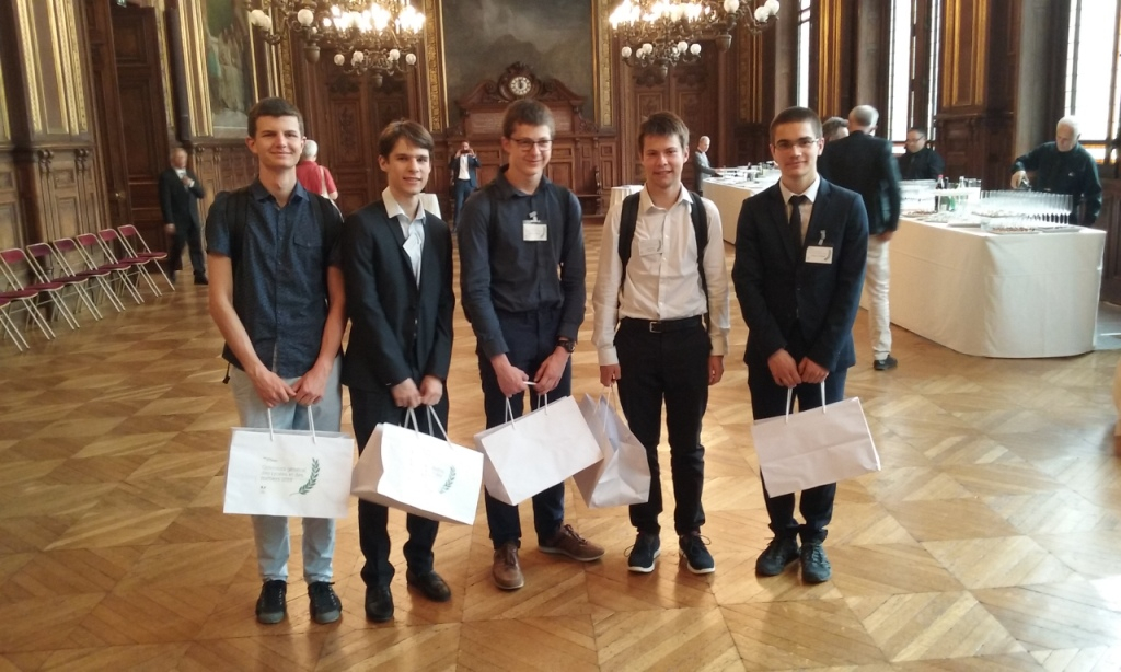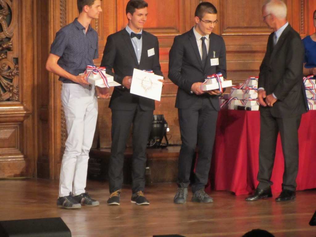 Pour fêter cet évènement, Arthur, sa famille ainsi que ses professeurs en Sciences de l’ingénieur Damien-Xavier CASSEZ et Reynald LEGRAND étaient invités à la Sorbonne le jeudi 11 juillet 2019 pour la remise des prix en présence des nombreux lauréats ainsi que du Ministre de l’Education Nationale Jean-Michel BLANQUER et diverses personnalités du monde scientifique, de l’industrie et du spectacle.