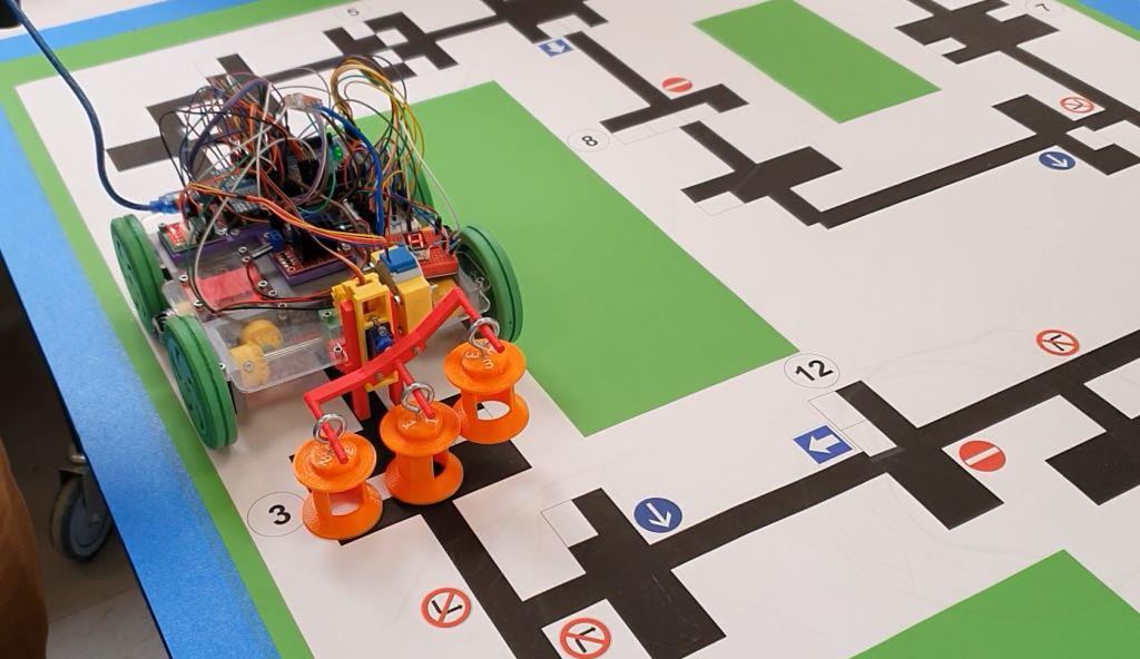 Chaque robot devait se déplacer dans une ville virtuelle, dont les rues étaient matérialisées par une ligne noire et les numéros de rue par un QR-code, afin de livrer trois colis à différentes adresses dans le meilleur délai.