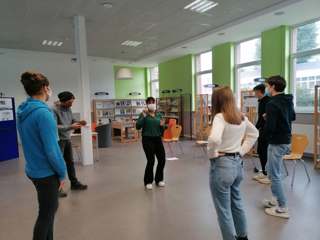 For our high school, the theatre workshops resumed this morning, while respecting the sanitary protocol. An adapted performance will be proposed to different classes on Tuesday 1st December. It will also allow our participating students to testify about their experiences during an Erasmus+.
