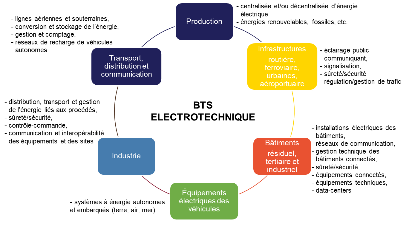 Les solutions techniques mises en œuvre par la personne titulaire du BTS « Électrotechnique » font appel à l’assemblage de constituants intégrés et connectés dans tous les secteurs d’utilisation de l’énergie électrique.