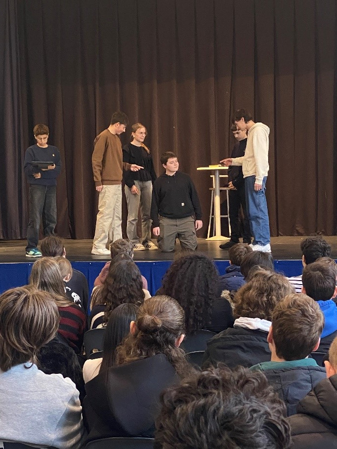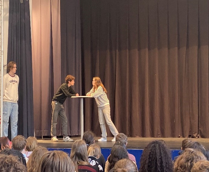 Vendredi 12 avril 2024, a eu lieu au sein de la salle de la Mauricienne du lycée Ozanam une représentation théâtrale faite par les élèves de la 2e67. Ce spectacle constituait l’aboutissement du projet PEPS, « Parcours d’Éducation, de Pratique et de Sensibilisation à la culture », mené en partenariat avec l’association « La clef des chants ». Aux commandes, Sandrine CORNILLE professeur de français et Bertrand VANDERBEKEN, professeur documentaliste au lycée Ozanam.