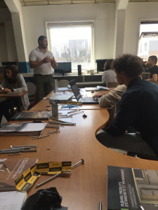 La matinée a été consacrée au 1ère année BTS SCBH. L’échange a été orienté vers la préparation à la période de stage en entreprise devant démarrer la semaine prochaine. L’après-midi, c’est au tour des 2ème année BTS SCBH, l’objectif étant de les aider aux choix techniques de dimensionnement d’assemblage et de fixation en plus de l’information sur les produits utilisés en ossature bois et charpente.
