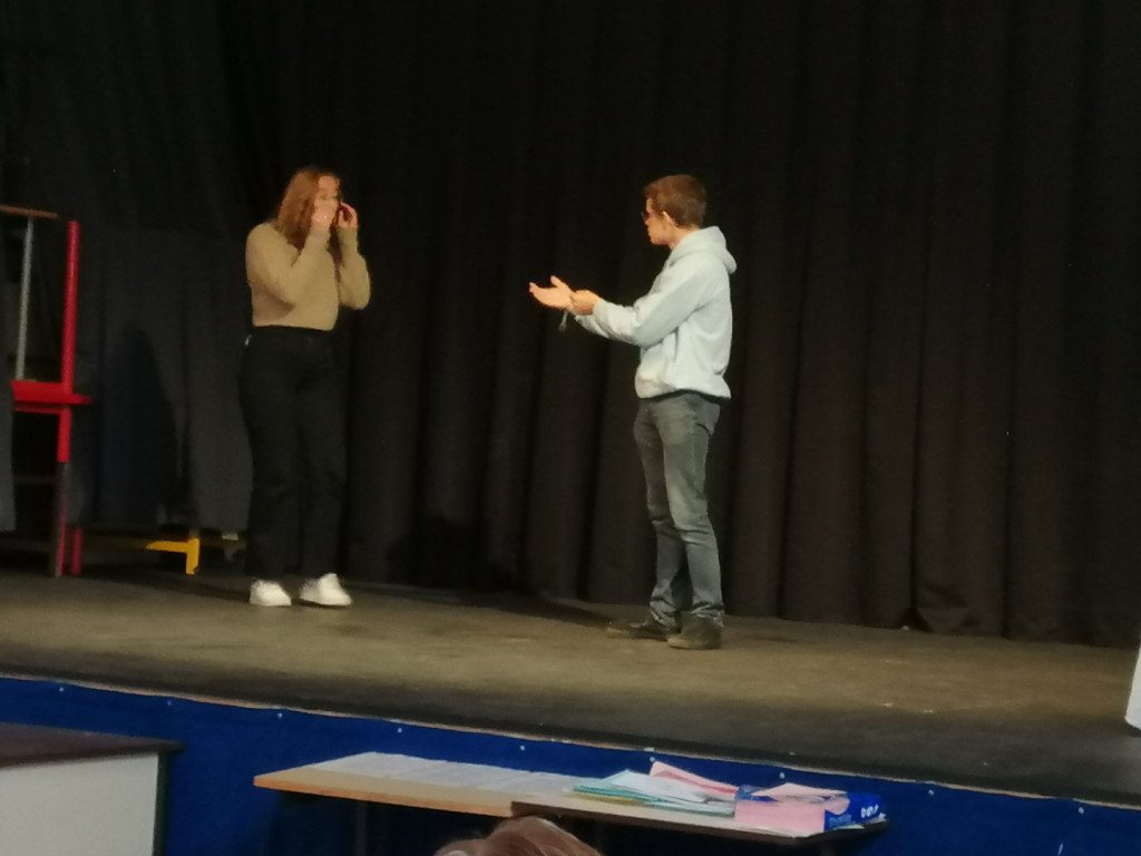 Les 25 et 26 octobre, 30 élèves de terminale, toutes et tous volontaires, ont participé à un atelier théâtre. Le but: non seulement découvrir le théâtre, mais aussi préparer le grand oral : aisance à l’oral devant un public, ou un jury.