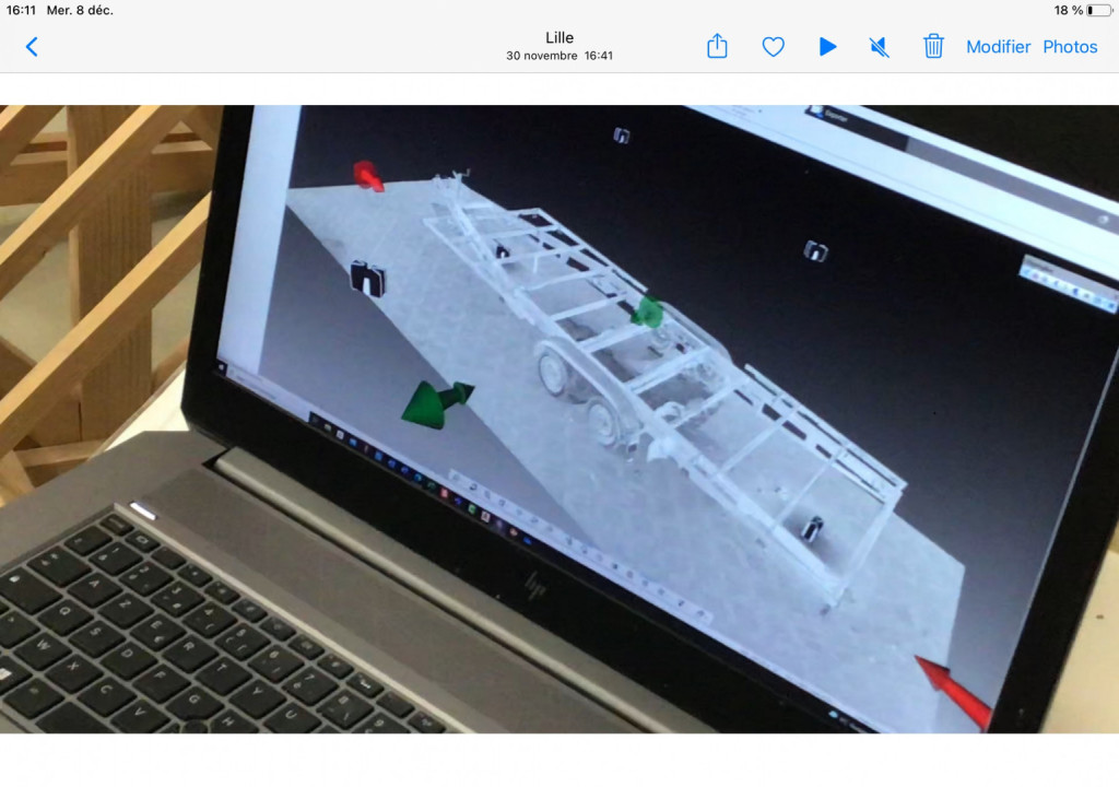 Dans le cadre de projets pédagogiques expérimentaux (tels que la fabrication d’une Tiny House avec l’association FIBOIS Hauts de France ou encore la conception d’un abri à vélos en structure bois réalisé par les étudiants de BTS 2 SCBH et en partenariat avec l’entreprise de logiciel 3D spécialiste du bois Sema Software), M. Roland de la société FARO est venu au lycée ÉPIL pour réaliser des scans 3D de la zone d’implantation de l’abri à vélo et de la remorque de la Tiny House.