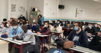 Les étudiants de BTS 1 MEC (Management Economique de la Construction) et de BTS 2 SCBH (Systèmes Constructifs Bois et Habitat) ont assisté au scan de la zone d’implantation du futur abri à vélo.
