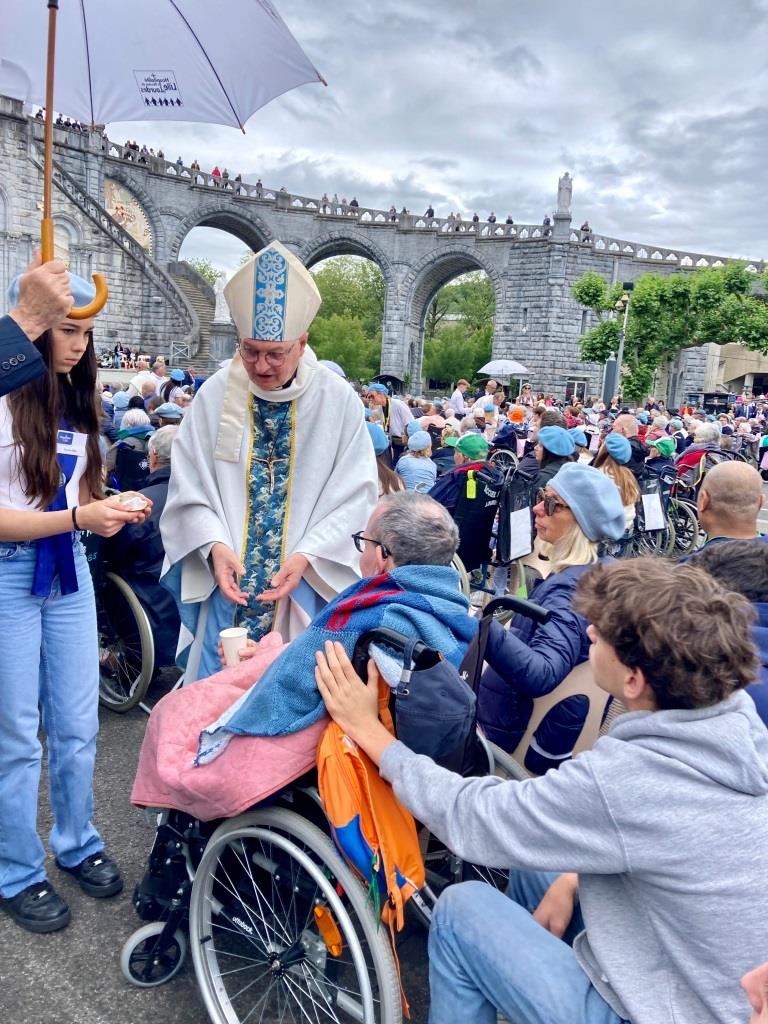 Nous avons eu la chance d’être accompagnés par notre évêque Mgr Le Boulc’h tout au long de ce pèlerinage, marqué notamment par la célébration du sacrement des malades : ce geste d’onction d’huile apporte force et douceur aux personnes souffrantes qui viennent chercher réconfort et paix de l’âme.