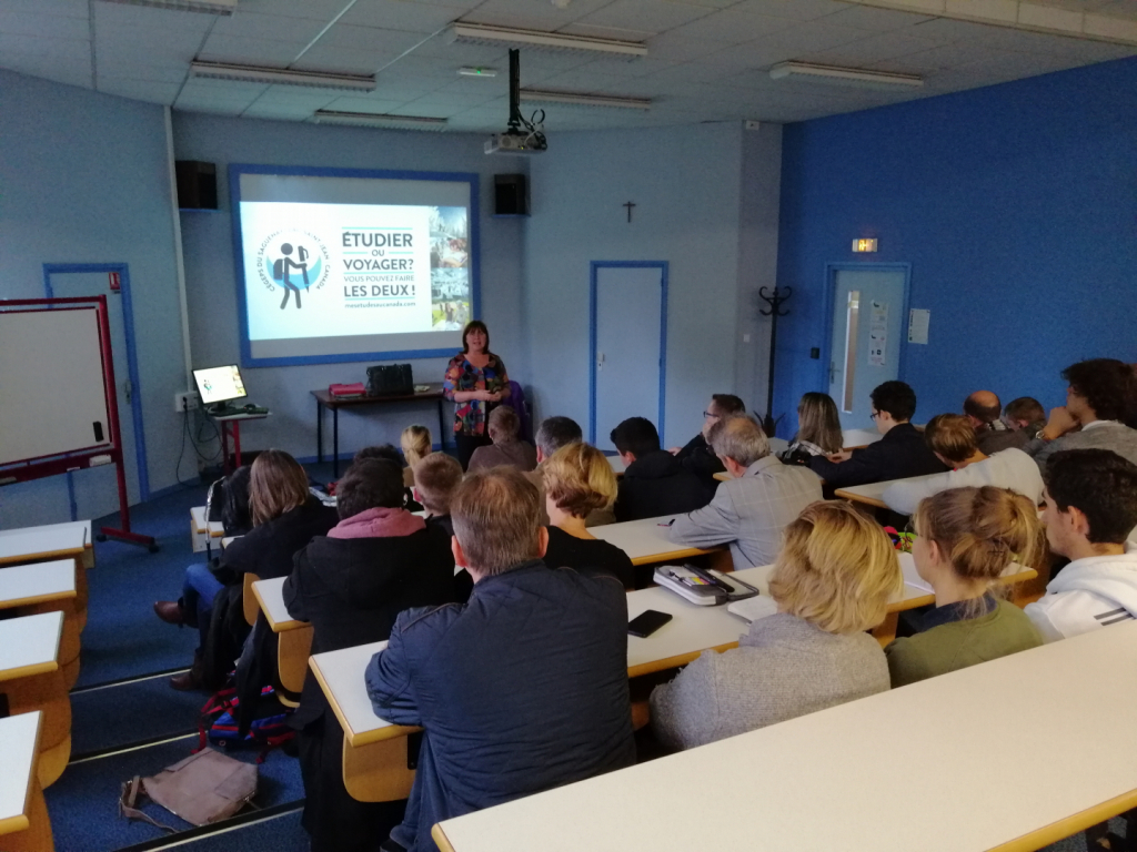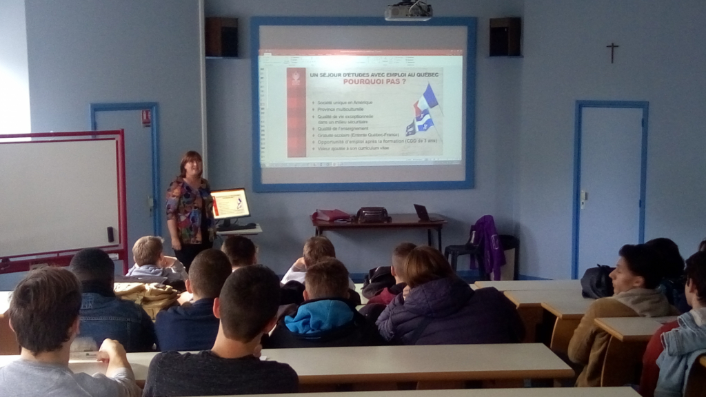 Madame Landry, responsable du recrutement à l’international du CEGEP  a présenté aux parents et lycéens intéressés toutes les possibilités d’études post-Bac, soit le DEC (Diplôme d’Étude Collégiale) en trois ans, équivalent BTS / DUT qui permet l’accès à l’emploi tant sur le marché canadien que français, ainsi qu’une poursuite d’études universitaires au Canada.