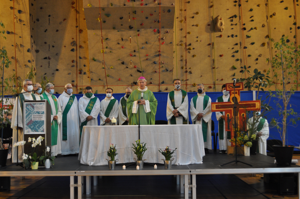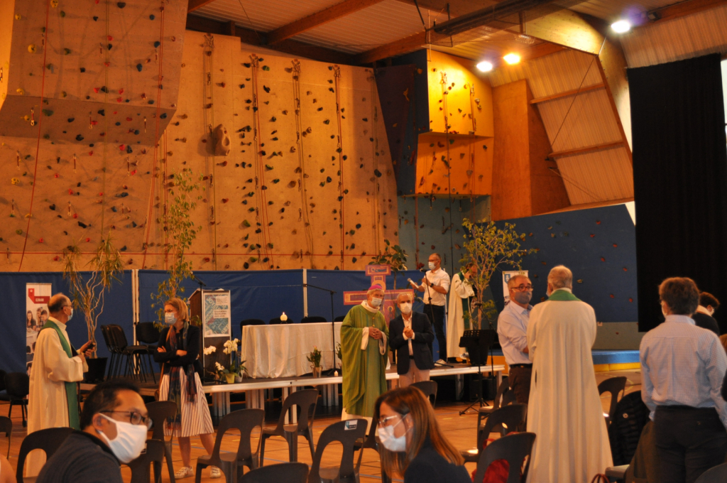 Cette journée animée par Hugues FANTINO débute par la célébration de rentrée présidée par Le Père ULRICH, suivi d’une intervention du Père ULRICH et d’Hubert ANTOINE Directeur diocésain de l’Enseignement catholique et d’un temps d’actualités et d’orientation.