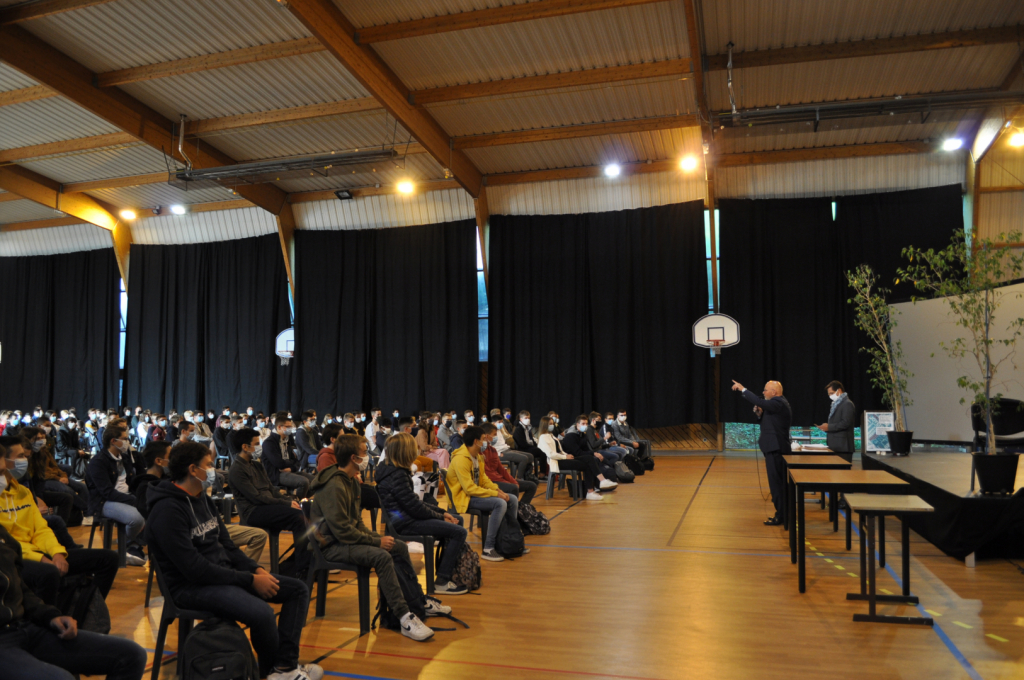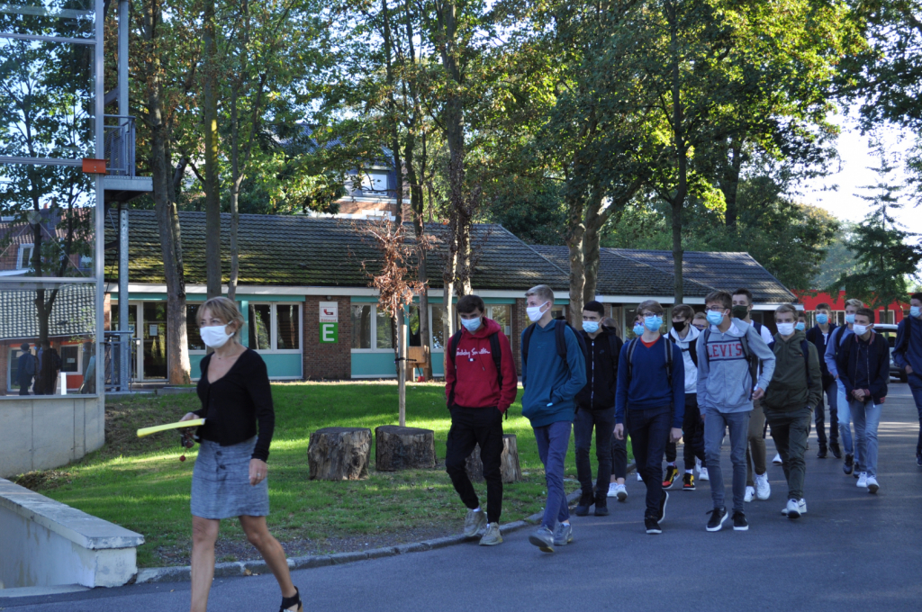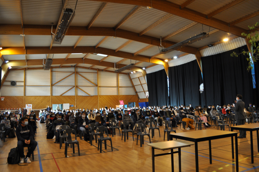 On débute par la rentrée des élèves de seconde, dans la salle de sport, qui nous permet de les accueillir, tout en respectant la distanciation et les règles de notre protocole sanitaire.