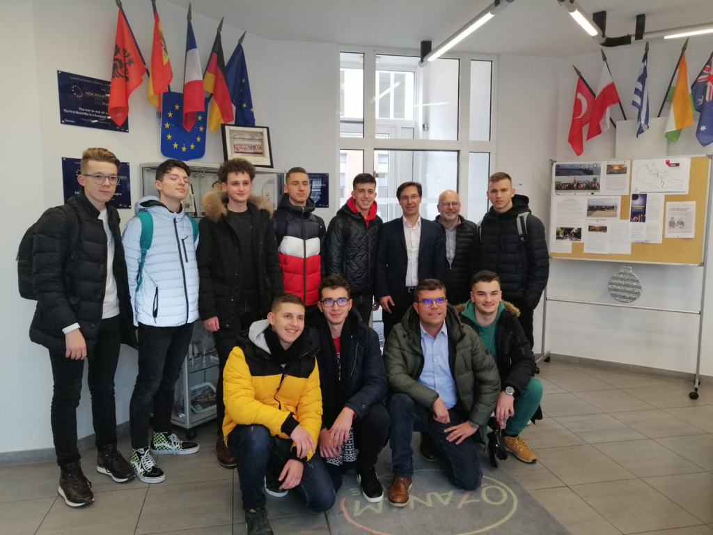 La présence de délégation albanaise est très rare dans la région. L’échange concerne 2 élèves de terminale (Paul Lamblin et Elliot Largillière) et 7 de 1ère (Martin Desrousseaux, Théo Fornier, Théophile Klein, Thomas Dujardin, Thomas Provost, Timtéo Prevost et Victor Rigolle)
