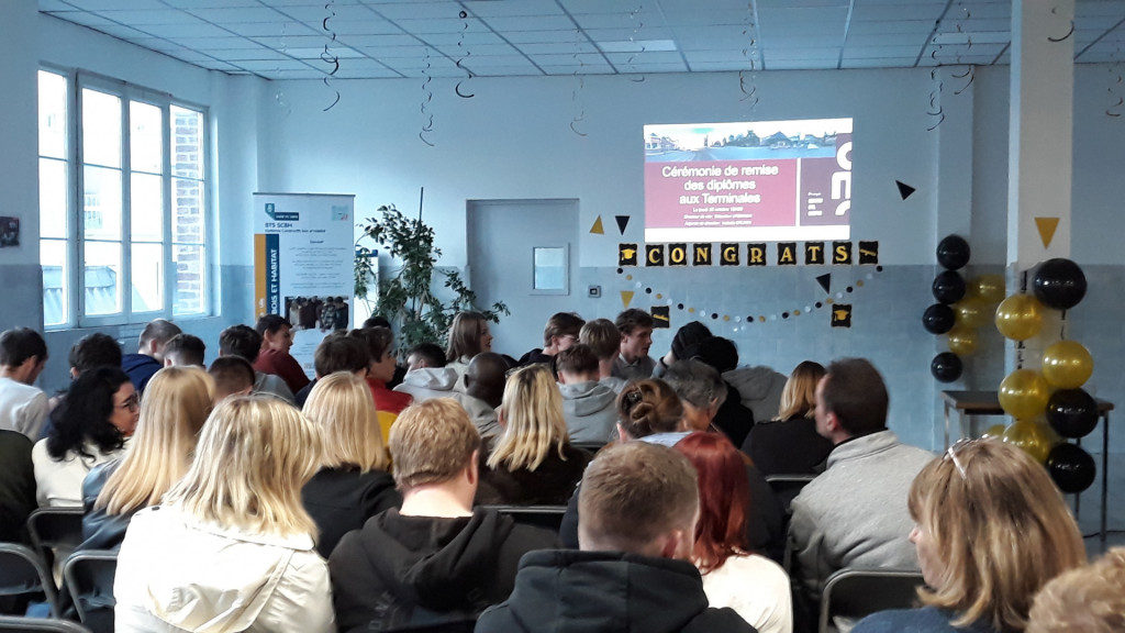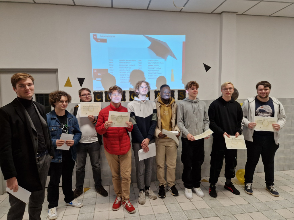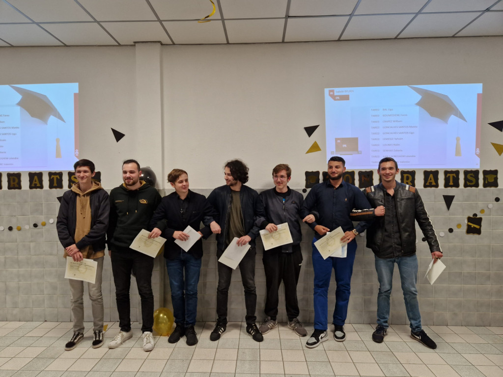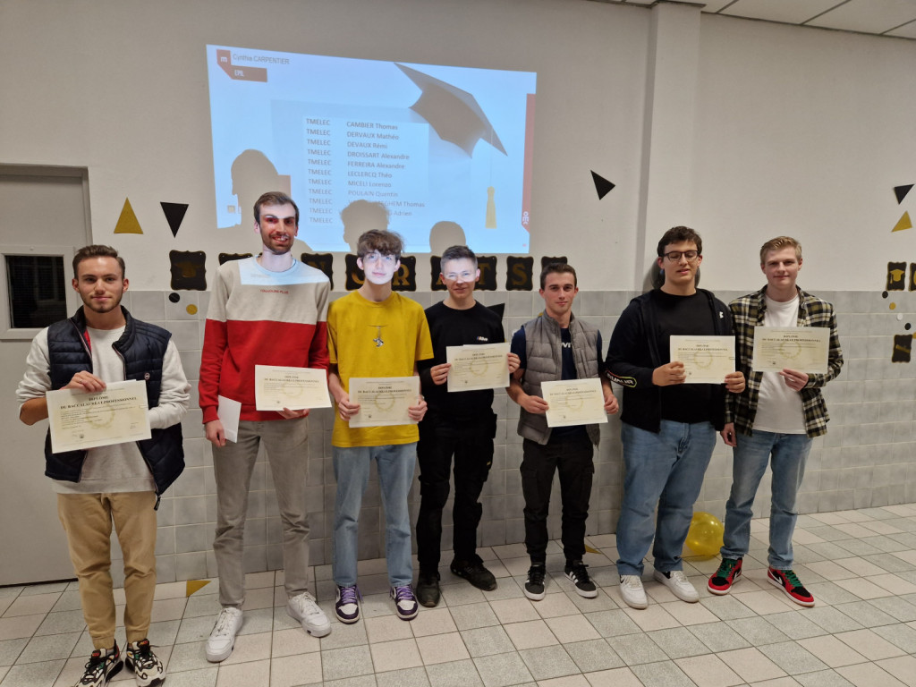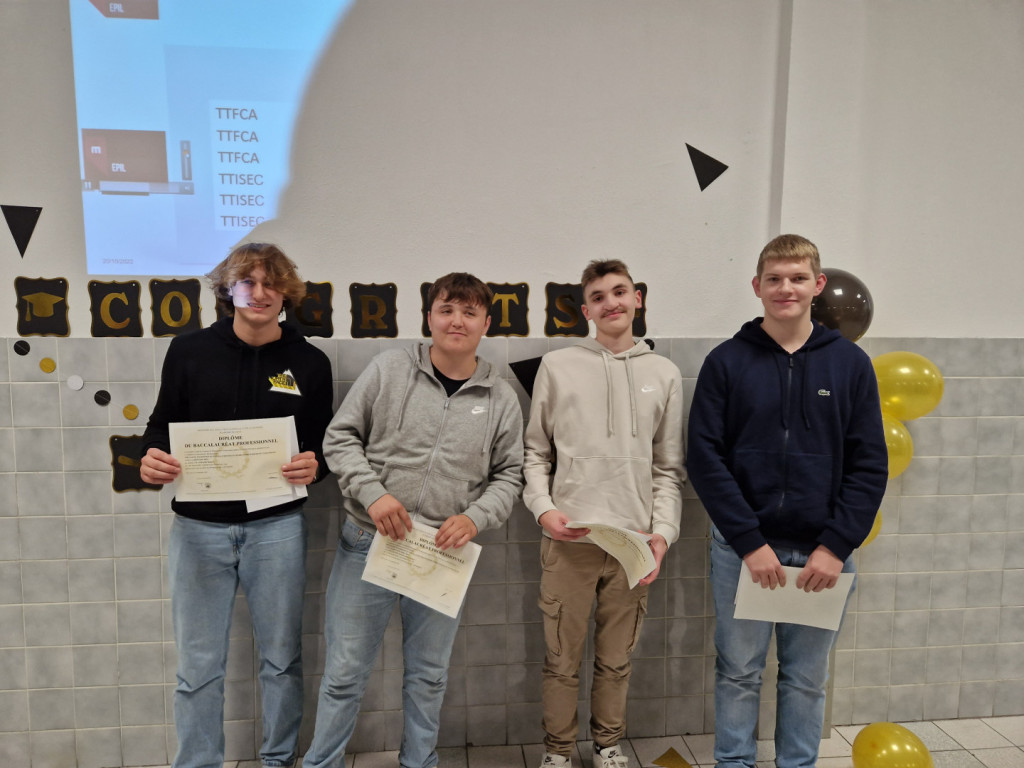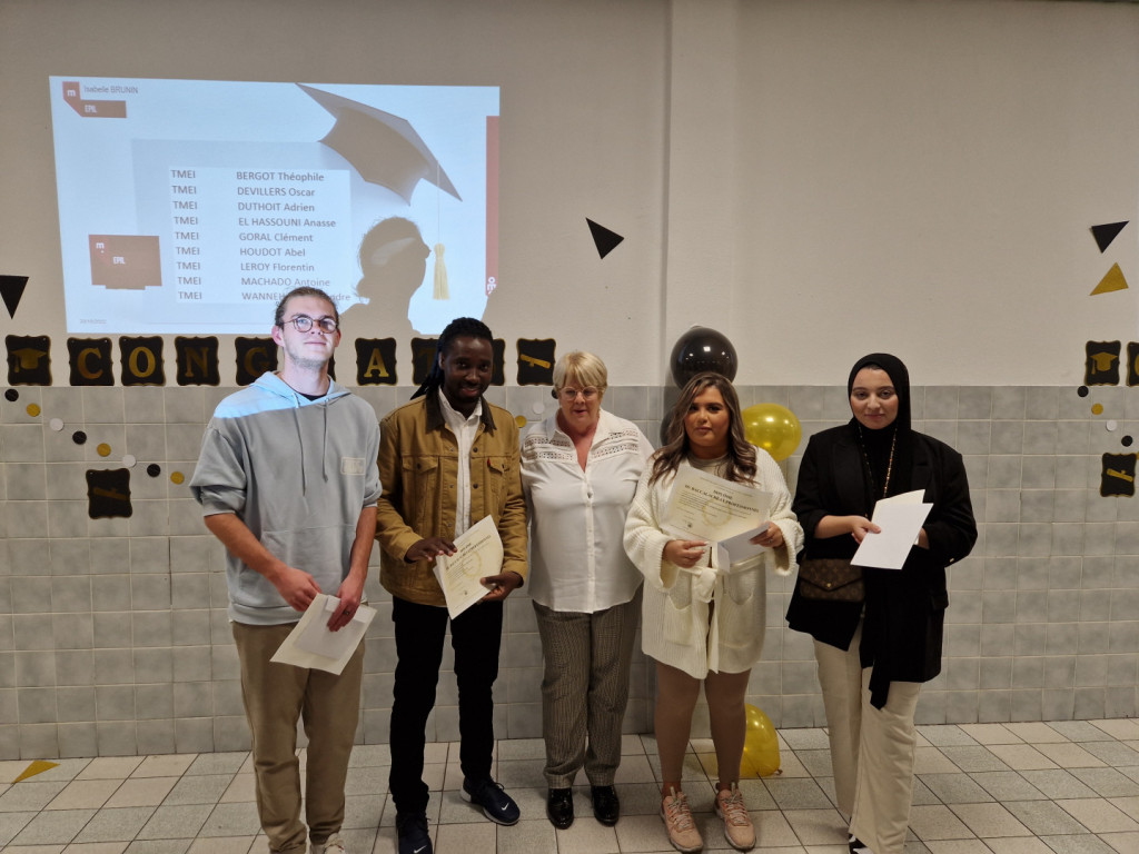 Le lycée Numérique des Métiers EPIL a tout d’abord accueilli les lauréats de bacs professionnels jeudi 20 octobre 2022 dans une ambiance très chaleureuse. Les équipes sont revenues en photo sur les années écoulées et enfin ont remis leurs diplômes à chaque bachelier des filières professionnelles ERA Etude et Réalisation d’Agencement, HPS Hygiène Propreté Stérilisation, SN Systèmes Numériques, MSPC Maintenance des Systèmes de Production Connectés, TMA Technicien Menuisier Agenceur, MELEC Métiers de l’Electricité / Electrotechnique et de ses Environnements Connectés, TISEC Technicien en Installations des Systèmes Energétiques et Climatiques et TFCA Technicien du Froid et du Conditionnement de l’Air.