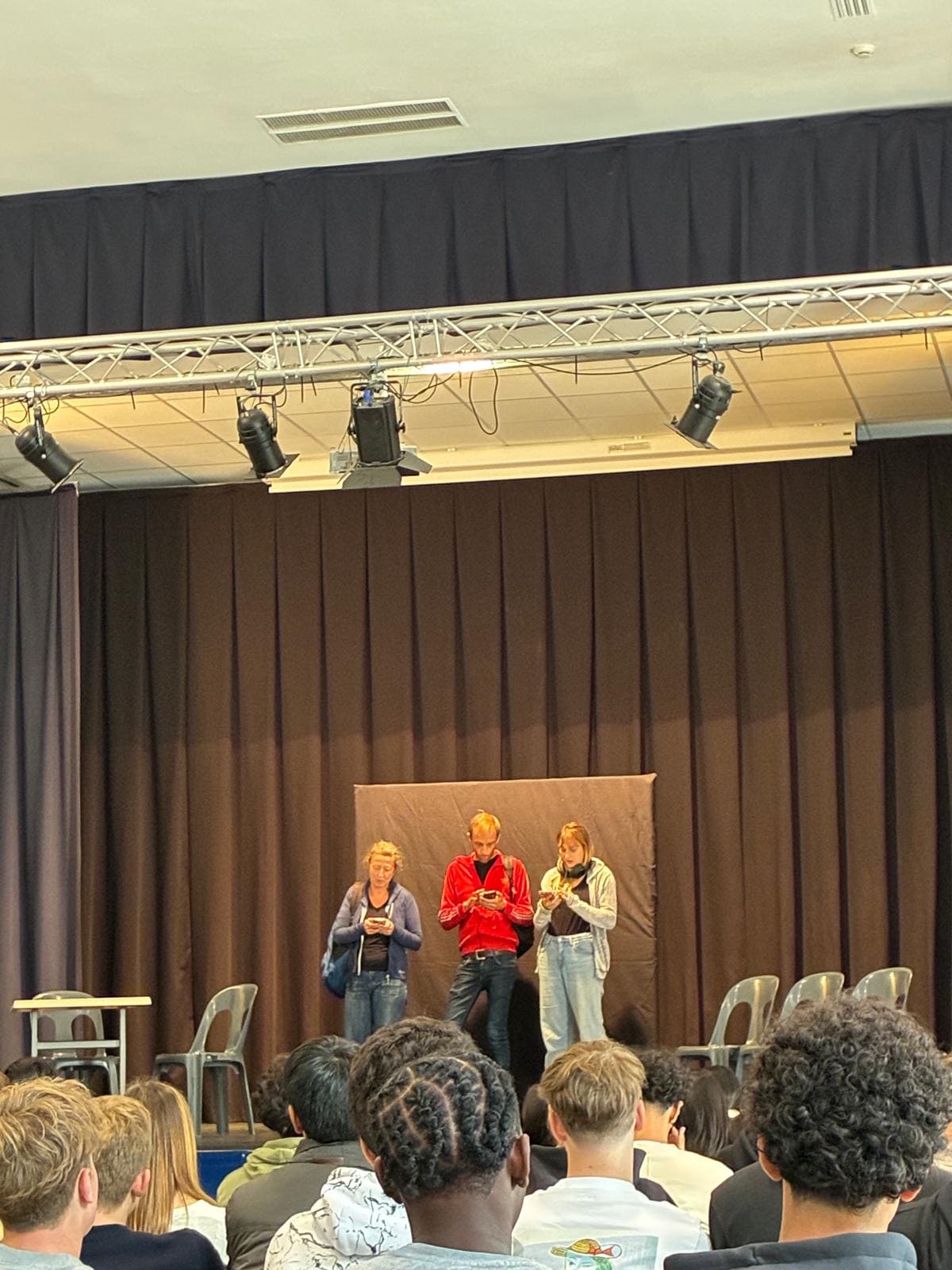 L’intervention de la même compagnie a permis d’aborder avec les élèves de Première les impacts de l’hyperconnexion et des réseaux sociaux sur la concentration, le sommeil et la vie sociale. Les élèves ont réfléchi aux usages responsables des écrans et à l’importance de préserver des temps de déconnexion pour leur équilibre personnel.