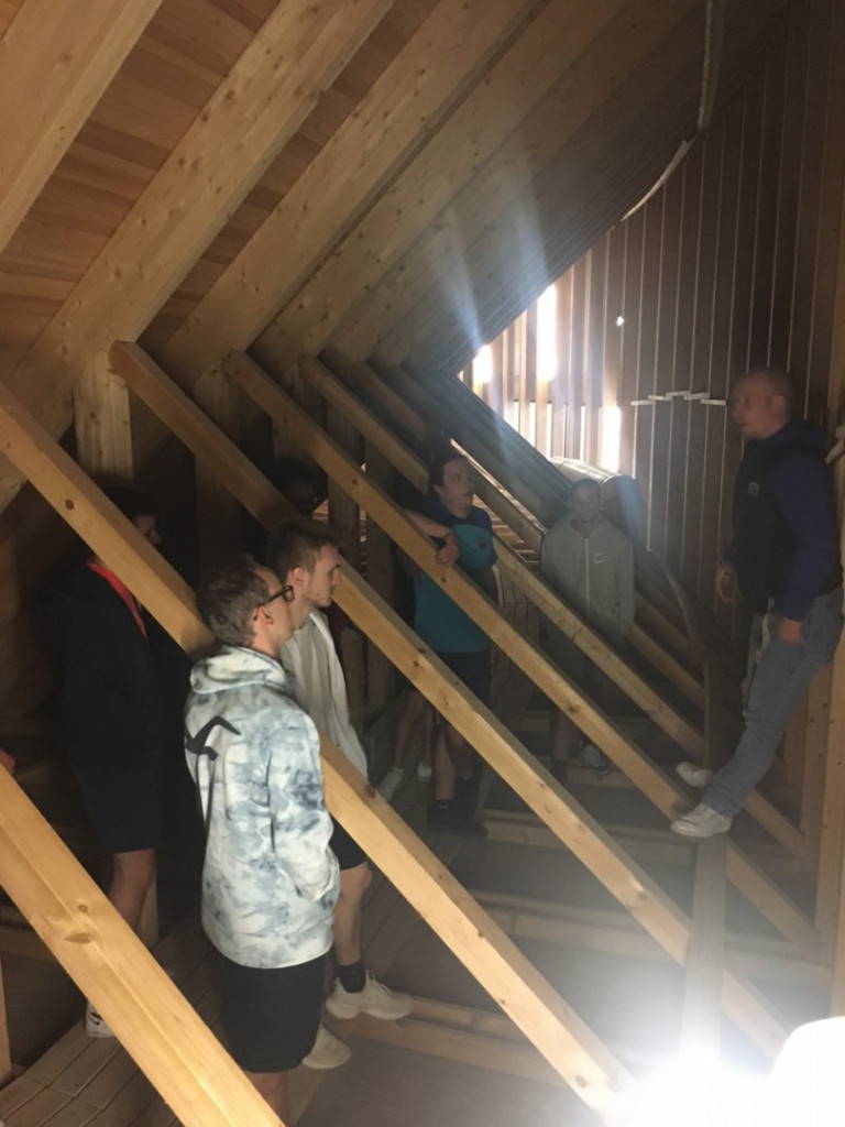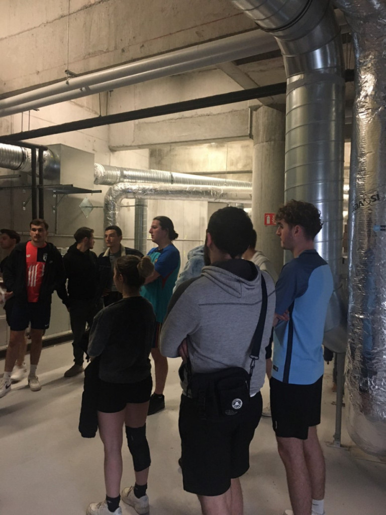 Une visite technique de ce bâtiment domotisé a ensuite été organisée avec l’un des techniciens. Le but ici était de comprendre toute la construction du Stab : les apprentis ont eu la possibilité de voir le dessous de la piste (toute l’ossature bois), le système de chauffage, de sécurité, les CTA….etc.
