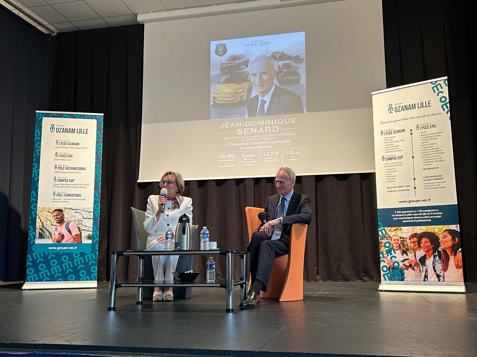 Jean- Dominique Senard était l’invité d’honneur. En plus de participer à ce déjeuner d’affaires, l’actuel Président d’administration du Groupe Renault a pris de son temps pour échanger avec quelques-uns de nos élèves et étudiants au cours d’une conférence. Conférence qui était l’occasion idéale pour nos apprenants de poser plusieurs questions concernant le secteur de l’automobile et d’autres thématiques telles que l’intelligence artificielle, l’impact environnemental de la production automobile, le secteur compétitif, le sujet des ressources. Il leur a aussi prodigué de précieux conseils en ce qui concerne le management et l’importance du travail d’équipe en entreprise. D’excellents conseils qui leur serviront sûrement plus tard ! Une rencontre intergénérationnelle très enrichissante pour nos jeunes !
