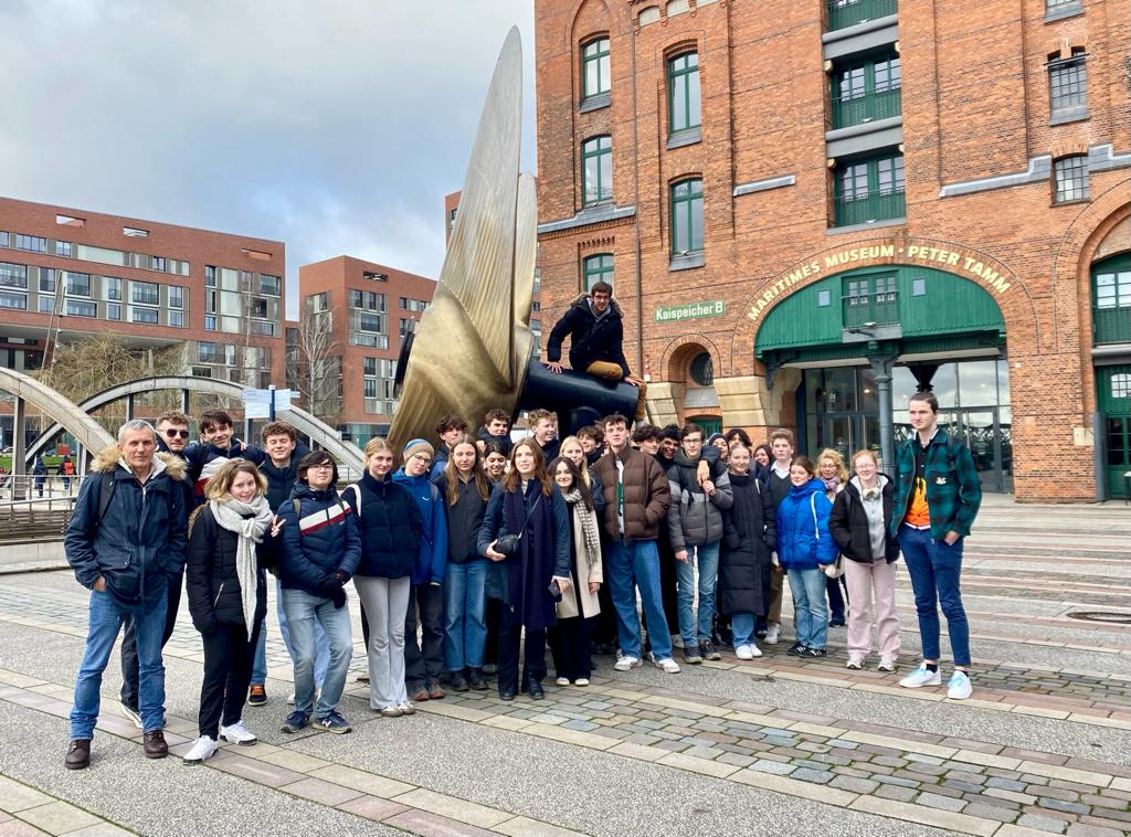 Dans le cadre de notre accréditation Erasmus, un groupe de 16 élèves de première, accompagné par Isabelle Refouni, professeur d’anglais et Frédéric Rousselle, directeur du pôle international pour le groupe s’est rendu à Kiel du 14 au 22 février, dans le Schleswig Holstein chez notre partenaire l’Hebbelschule https://hebbelschule-kiel.lernnetz.de/de-DE/