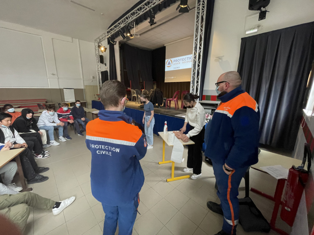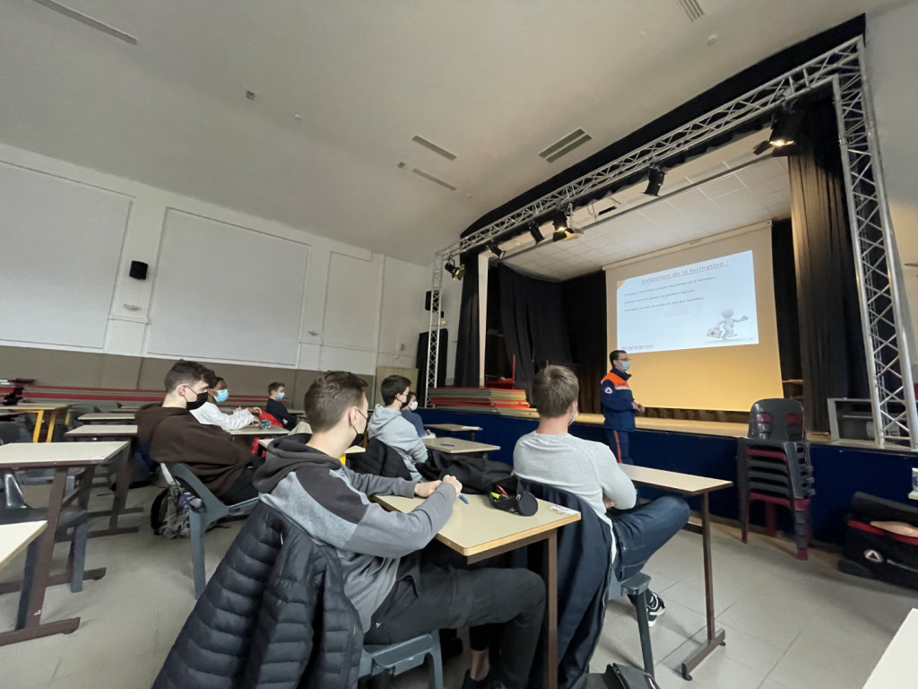 La formation a été effectuée par la Protection Civile du Nord, association agréée sécurité civile. Durant toute une journée, les élèves ont été formés aux gestes qui sauvent en cas de différents accidents, malaises, plaies, brûlures, traumatismes, arrêts cardiaques…, à l’alerte des secours, aux populations et protection du citoyen, ou encore à la protection et au dégagement d’urgence. Le BDE a pris en charge l’intégralité des frais de formation, afin de permettre à un maximum de lycéens de tous niveaux d’obtenir ce diplôme essentiel.
