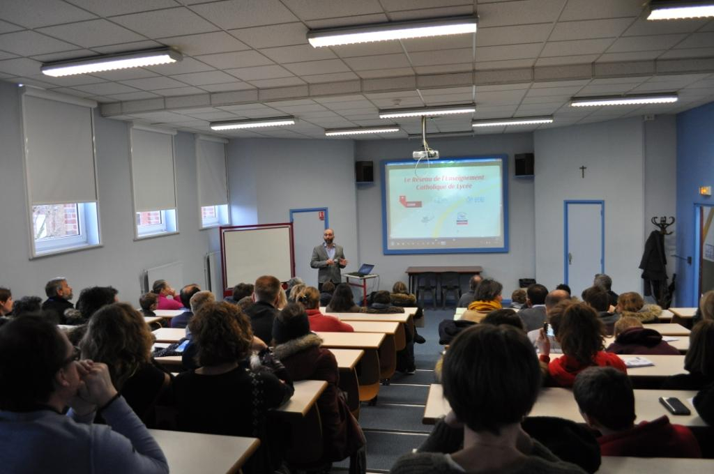 Samedi 26 janvier 2019, le lycée Ozanam a ouvert ses portes. Au programme visite des locaux, découvertes des salles en fonctionnement … Des conférences ont permis aux visiteurs de s’informer sur la réforme du lycée et de découvrir les enseignements qui seront dispensés dans notre établissement à la rentrée de septembre 2019 en réseau avec les établissements Lillois. Celles-ci ont été très appréciées. Nous programmons le jeudi 28 février 2019 à 18h30 une réunion d’information pour les parents des élèves qui intégreront le lycée à la rentrée prochaine. Cette soirée est aussi prévue pour nos élèves de seconde et leurs parents qui auront toutes les précisions pour l’orientation après la classe de seconde. Nous vous donnons rendez vous le samedi 23 mars 2019 de 9h à 13h pour la dernière matinée Portes Ouvertes.