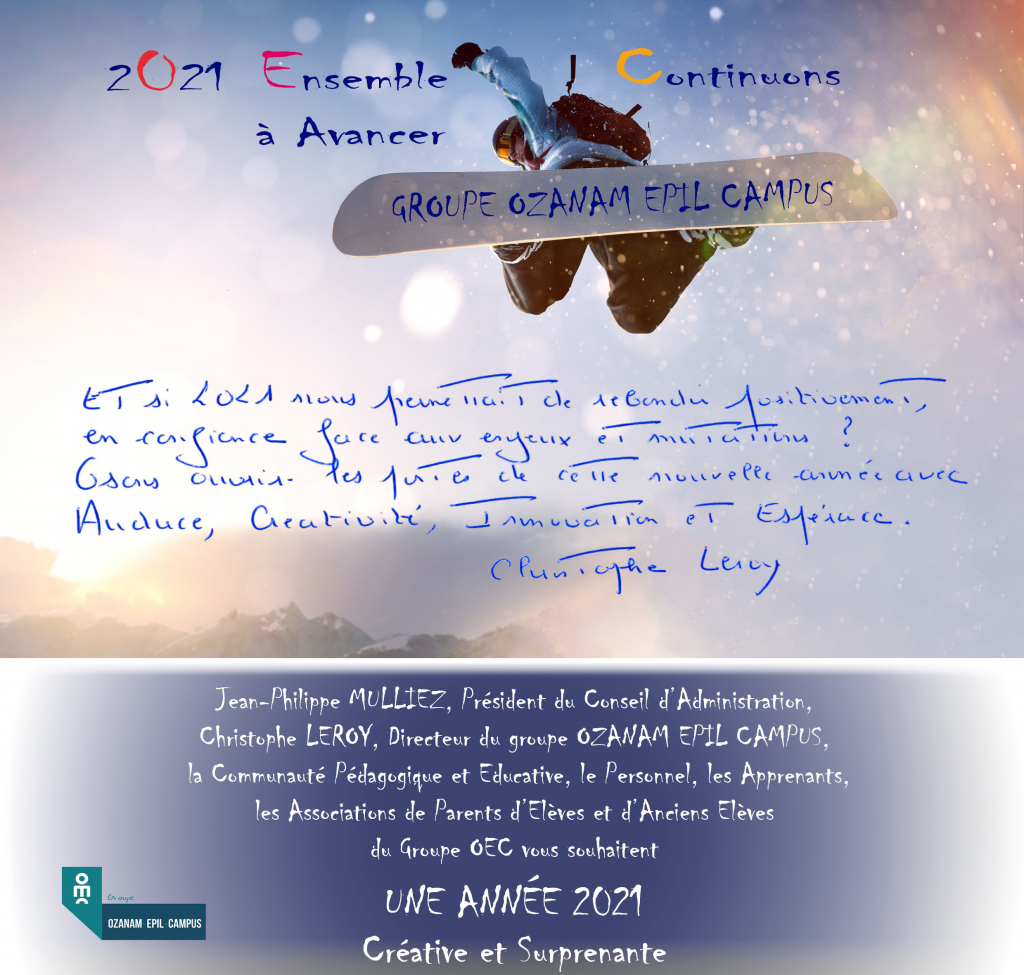 Je vous souhaite un très joyeux Noël d’espérance. Que 2021 nous donne la confiance nécessaire pour croire en l’avenir, pour aller de l’avant, pour s’engager et oser relever les défis qui se présentent à nous.