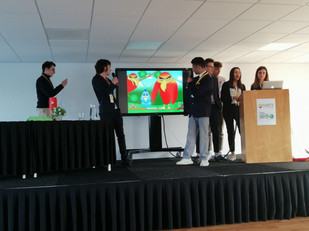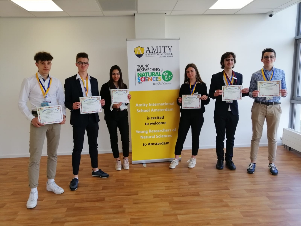 Du 08 au 11 avril, une équipe de 6 lycéens de 1ère S (Annonciade, Inès, Jalil, Maxence, Igor et Nicolas) encadrés par Franck VI, professeur de Physique, et Emmanuel BOSSEAUX, professeur de SVT, ont participé à l’YRoNS : Young Researchers of Natural Science. Organisée par l’Amity International schools basé à New Delhi, cette 12ème rencontre a eu lieu à l’Amity International School d’Amsterdam, et a regroupé 7 délégations de sept pays : Inde, Norvège, Slovénie, Allemagne, Hongrie, Pays Bas et bien sûr notre délégation française. Le thème de cette année : « The blue dye in smurf candies » . Notre équipe a préparé en amont un exposé sur « The blue dye present in an example of food and in nature ».